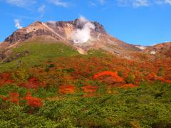 福島県と栃木県にまたがる那須連山の主峰で、現在も噴煙をあげている。標高1915mの山頂からは、北は東北地方、南は関東平野を一望できる。山頂まではロープウェイ(例年3月中旬~11月下旬運行)が便利で、山頂駅から山頂までは徒歩50分ほど。那須連山の南側には那須高原が広がり、観光牧場や美術館、遊園地などが点在するリゾート地となっている。