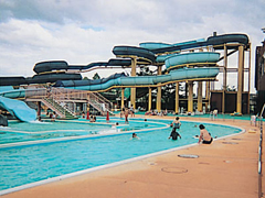 名物のウォータースライダーは15mの高さから曲線を描きながら滑降し、迫力満点だ。ほかに、浮き輪でバランスをとりながらの急流を下るリバーライドや流れるプールなどが揃う。屋内プールは地下650mから湧き出る水(温泉成分を含む)を利用している。屋内プール利用の際は水泳帽着用。小学4年生未満は保護者の同伴入場が必要。スライダーの利用は身長120cm以上。