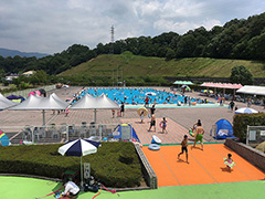 50m競泳プール・幼児プール・流水プールなど、年齢問わず楽しめる屋外プール。プール施設以外にも、アスレチックや陸上競技場・テニスコート、体育館などが揃う複合運動公園となっている。