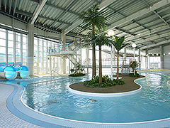 一年中お風呂とプールが楽しめるレジャー施設。屋内スライダーは45mと30mの2コースがあり大人気。25mの屋内プール、流水プール、子供・幼児プールのほか、水遊び用の屋外プールがある。