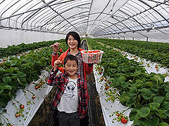 道の駅 樋脇から車で約5分。山と田に囲まれた田舎でこじんまりと開園している。大きな農園ではないが、イチゴ作り40年以上、量より質にこだわっており、鹿児島生まれの大粒で甘い「さつまおとめ」や「やよいひめ」、「ぴかいちご」、「おいCベリー」、「スターナイト」などの品種が揃う。良質な有機肥料と土づくりにこだわり、子どもや車椅子の人でも楽しめる高設栽培のハウスもある。