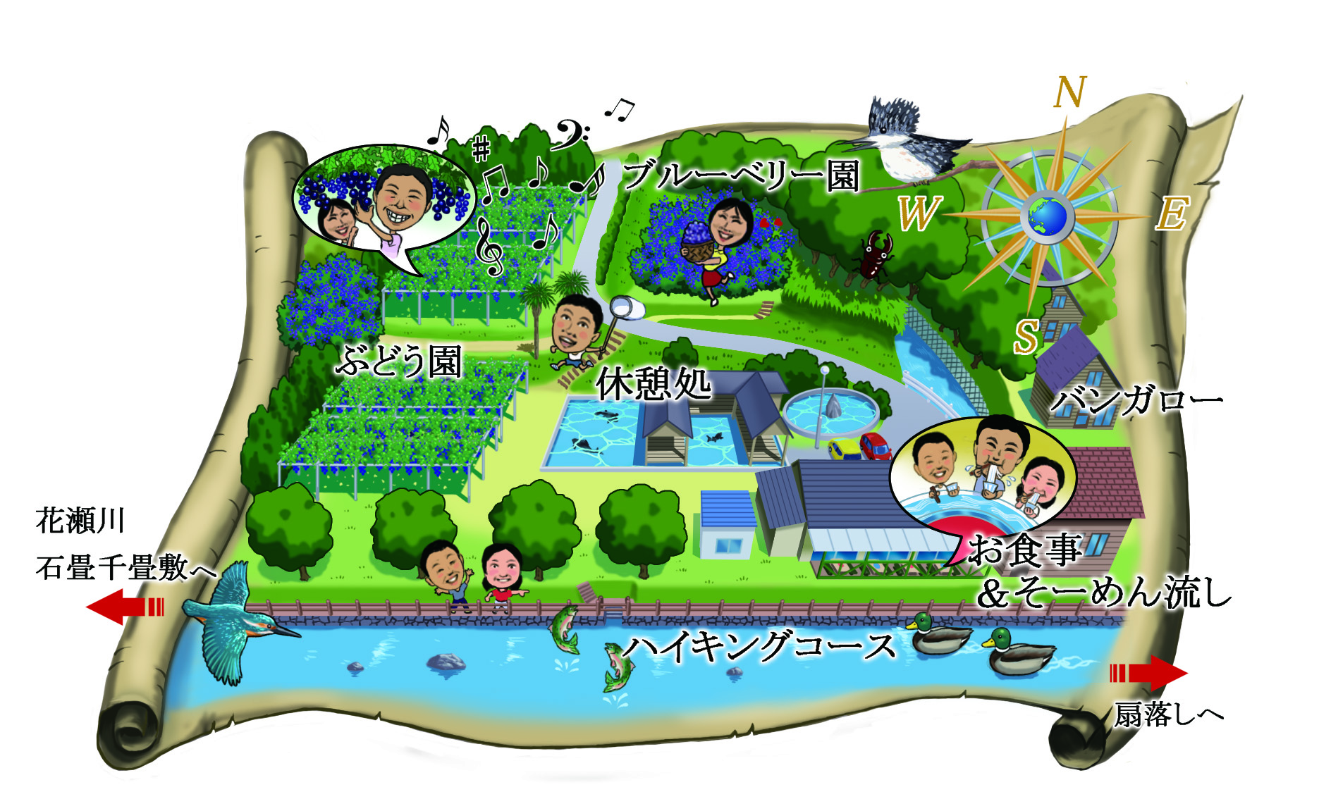 | 営業時間 | 9~17時(7~9月)、農園レストラン花瀬川苑は11~15時(4~9月)、10~3月は予約営業。 |