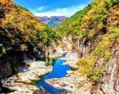 鬼怒川温泉と川治温泉の間に位置する渓谷で、その名のとおり、龍がのたうつ姿を思わせる迫力のある景観が川岸に続く。およそ2200万年前、海底火山の活動によって噴出した火山岩が鬼怒川に侵食され、現在の形になったといわれる。渓谷の入り口の虹見滝から上流のむささび橋にかけては、白龍峡と呼ばれる最も見応えがあるスポット。むささび橋からの眺めは、四季折々に巨岩と清流がおりなす芸術品が眼前に広がり、とりわけ紅葉のシーズンは、渓谷一帯がひときわ美しく映える。