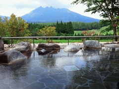21世紀に残したいふるさとの風景“新・くまもと百景”で、熊本県民投票のもと第一位に選ばれた公園。広々とした芝生広場の向こうに根子岳を望み、草スキーや動物とのふれあいも。
