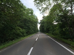千歳市街から支笏湖へと続く道道16号の両脇に、カラマツやシラカバの森林が広がる。晴れた日は木々の間から青空がのぞき、爽快なドライビングロードに。