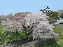 初代松前藩主である松前慶廣が築造した福山館を前身とし、外国船打払いのため、海に面した三ノ丸に7基の台場を設けて安政元年(1854)に完成した最北の日本式城郭。昭和16年(1941)に木造天守が国宝に指定されたが、その8年後、飛び火により焼失。町民の願いで昭和35年(1960)に鉄筋コンクリート製の復興天守が竣工した。国指定重要文化財の本丸御門や、復元整備された天神坂門・搦手二ノ門・七番台場などの遺構が歴史を物語っている。復興天守の内部は松前城資料館となっており、複製縄張り図や、北前船関連資料などが展示され、当時の歴史を知ることができる。所要40分。