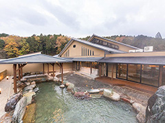 ゆとりの空間で、大自然とすべすべ感たっぷりの温泉を堪能できる日帰り入浴施設。内湯や露天風呂に、多彩な湯船が並ぶ。