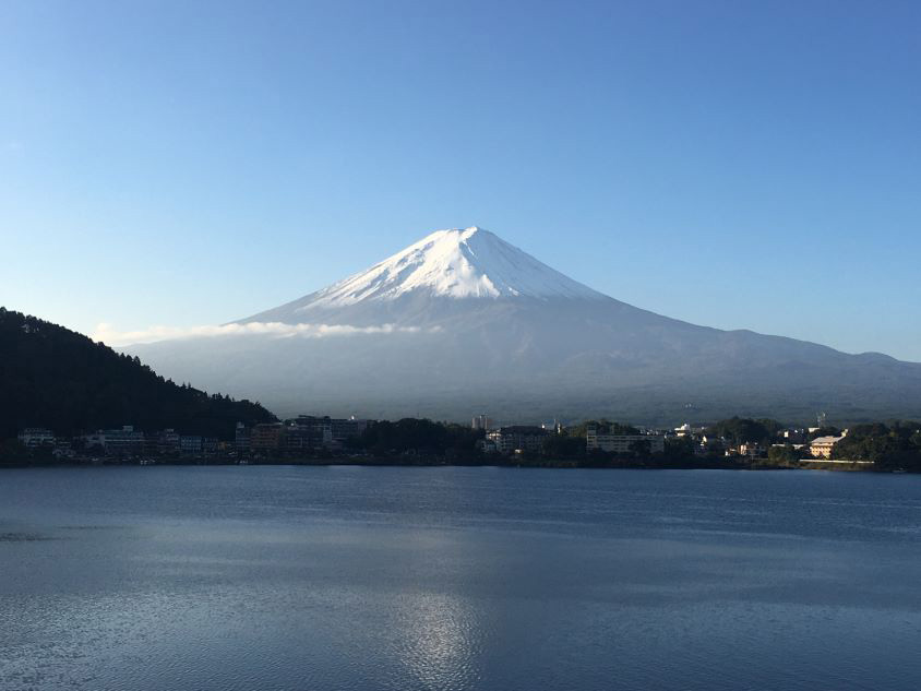 河口湖の奥にみえる富士山