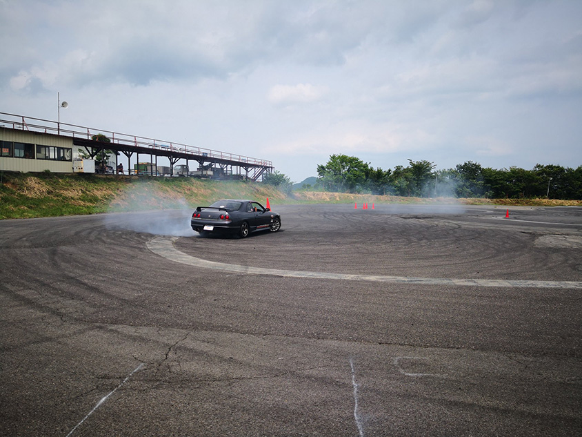 また基礎からのスクールなので、ドリフトの基礎である定常円旋回からみっちりと学ぶことができる。ドリフトスクールでも、サーキットで開催されるスクールの多くはいきなりコース走行で、定常円旋回ドリフトや8の字旋回ドリフトを練習するチャンスはないことが多い。