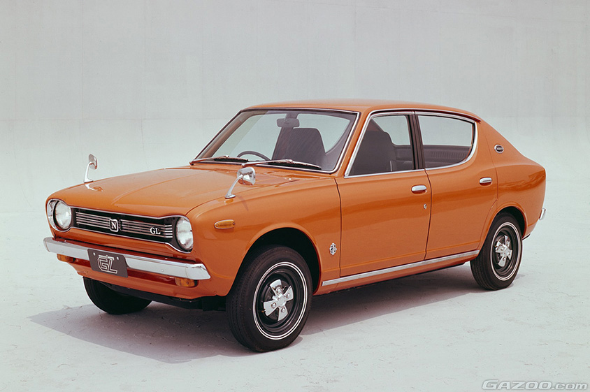 1970年10月、3カ月におよぶ大がかりなティーザーキャンペーン(情報を小出しにして消費者の関心をあおること)の後に“超えてるクルマ”というキャッチフレーズを掲げて登場した、日産のラインナップの底辺を支える小型車。日産初のFF車であると同時に、1959年に誕生した初代ミニ(コードナンバーADO15)によって世に示され、その後の小型実用車の設計に大きな影響を与えた“水冷エンジン横置き方式のFF”を初めて採用した日本車でもあった(横置きに関しては、特殊な空冷エンジンを用いたホンダ1300という前例はあったが)。