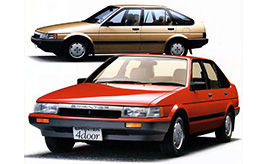 1983年5月、フルモデルチェンジされ5代目となったカローラと販売店違いの兄弟車だったスプリンター(AE80系)。4ドアセダンの駆動方式はそれまでのFRから遅ればせながらエンジン横置きFFに転換し、新たにセダンをベースにしたユーティリティー重視の5ドアハッチバックが加えられた。なお、先代まではDOHCエンジン搭載のクーペのみに与えられていたレビン/トレノのサブネームがシリーズ名となった2ドア/3ドアのクーペは、従来どおりFRだった。