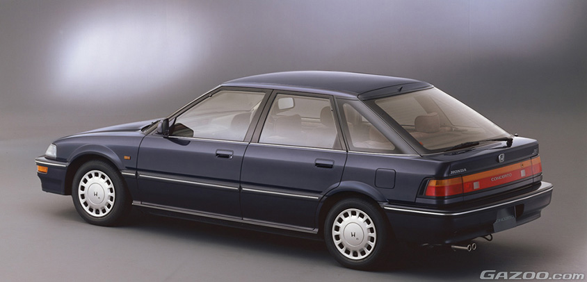1988年にデビューしたコンチェルトは、ホンダ初の5ナンバーフルサイズサルーンだった初代レジェンドに続いて、当時ホンダが提携していた英国のオースチン・ローバー・グループと共同で開発されたモデル。フロアユニットはシビックがベースだが、ひと回り大きいボディーは、いずれも6ライトのサイドウィンドウを持つ4ドアセダンと5ドアハッチバック。スポーティー志向が強く、ワイド&ローのプロポーションが多かった同時代のホンダ車のラインナップにあって、全高が高めで落ち着いた印象で、5ドアには実用性重視だった初代クイントの後継モデルのような雰囲気もあった。