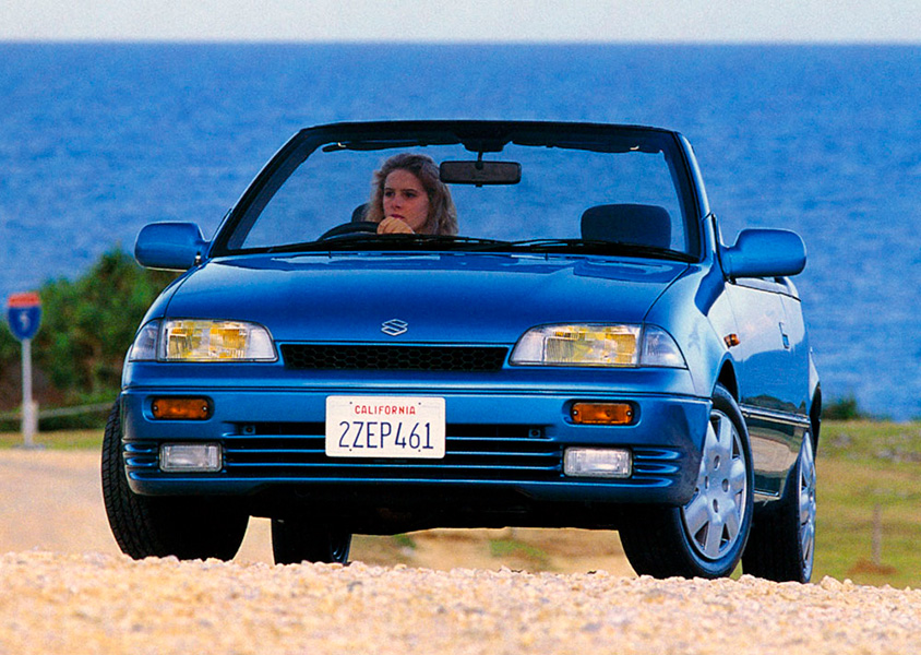 イメージキャラクターに俳優の舘ひろしを迎え、「オレ・タチ、カルタス。」という伝説のダジャレコピー(?)を掲げていた初代の後を受けて、1988年に登場した2代目カルタス。デビューから約3年半を経た1992年にコンバーチブルが追加された。当時スズキが提携していたゼネラルモーターズ(GM)からジオ・メトロ コンバーチブルの名で前年に発売され、好評を博していたモデルを国内でも販売したのである。