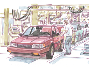 1980年になると日本の自動車生産がアメリカを上回って世界一に。アメリカでは保護主義的な空気が広がり、日本は対応を迫られました。対米輸出枠を削減する自主規制を行わざるを得なくなり、日本の自動車メーカーはアメリカでの現地生産を進めることになります。
