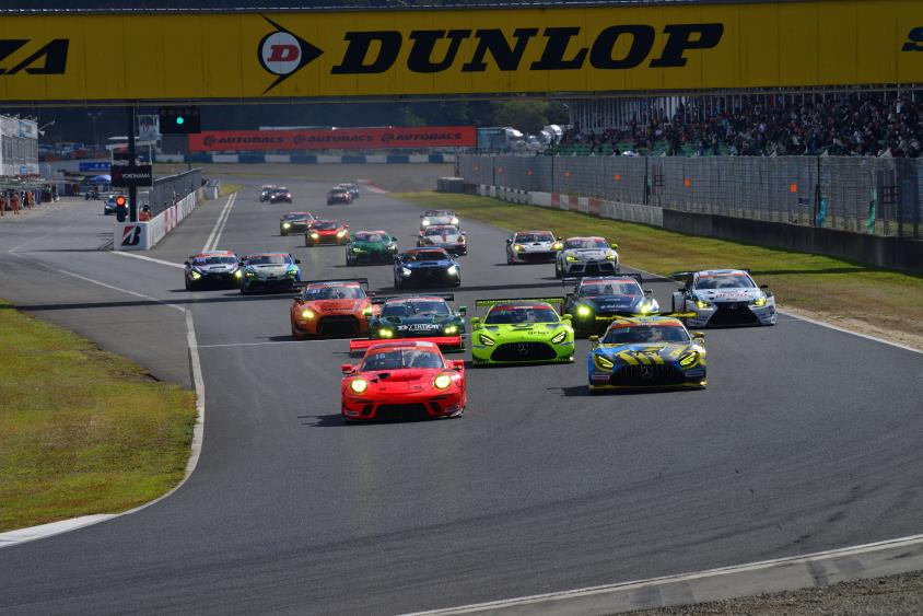 天気は昨日に続き快晴、午前Gr2スタート時の気温は16℃、日中は26℃、ドライ環境で、午前中はGr2(ST3/ST4/ST5/STQ#28,#32,#55,#61)に27台、午後はGr1(STZ,STX,ST2,STQ# )に23台が出走した。Gr1の優勝は、ST-Xクラスの16号車ポルシェセンター岡崎 911 GT3R、Gr2の優勝はST-3クラス63号車TRACYSPORTS RC350TWSだった。またST-Zクラスの500号車 5ZIGEN AMG GT4が年間チャンピョンを決めた。