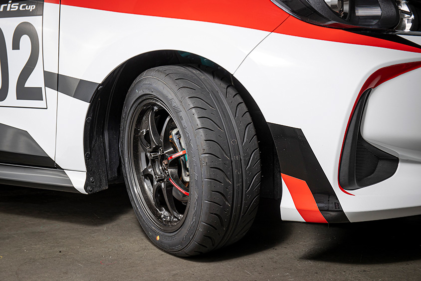 ヤリスカップでは、グッドイヤー製タイヤ『GOODYEAR EAGLE RS SPORT S-SPEC(サイズ:195/55R15 )』のワンメイクとなるが、ホイールやブレーキパッドは好みのものに交換可能