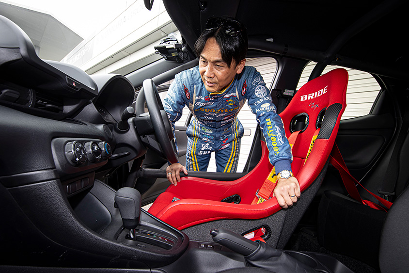 そして、そんなヤリス カップカーの走りをチェックするのは、ヴィッツレース参戦経験もあるプロドライバーの田ヶ原章蔵選手。タイヤメーカー『グッドイヤー』のワークスドライバーとして2008年から4年間ヴィッツレースに参戦し、ポールポジションや優勝経験もある実力派ドライバーで、ヤリス カップカーのチェックにはうってつけの人物。