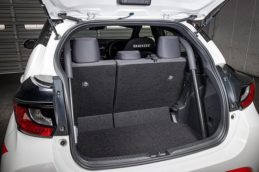 ラゲージスペースの容量も十分。リヤシートを倒せば、タイヤ4本に工具や着替えなどの荷物も載せられるので、1台でサーキットまで行き、レースを走るといった使い方もできる