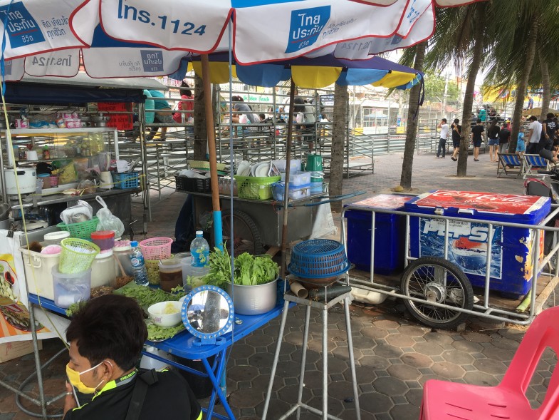 コース脇にはタイ料理の屋台が並びます。ナンプラーとパクチーの薫りが漂う空間でレーシングカーのエギゾーストノートに包まれる……。贅沢な雰囲気です。実はこの背後はバンセンのビーチなんです。観戦料金も無料ということで、老若男女のんびりと観戦を楽しんでいる様子が印象的でした。