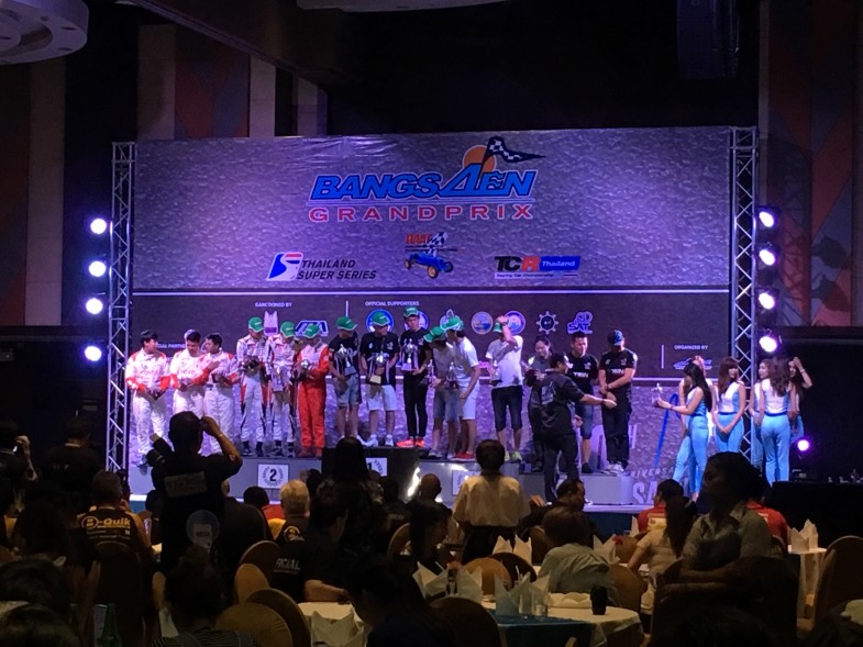 これはトヨタタイランドが主催するワンメイクレースの年間表彰式の様子です。なかなか派手、そして華やか。チーム関係者や主催・運営関係者、財界・政府要人も臨席し、オフィシャル感満載でした。