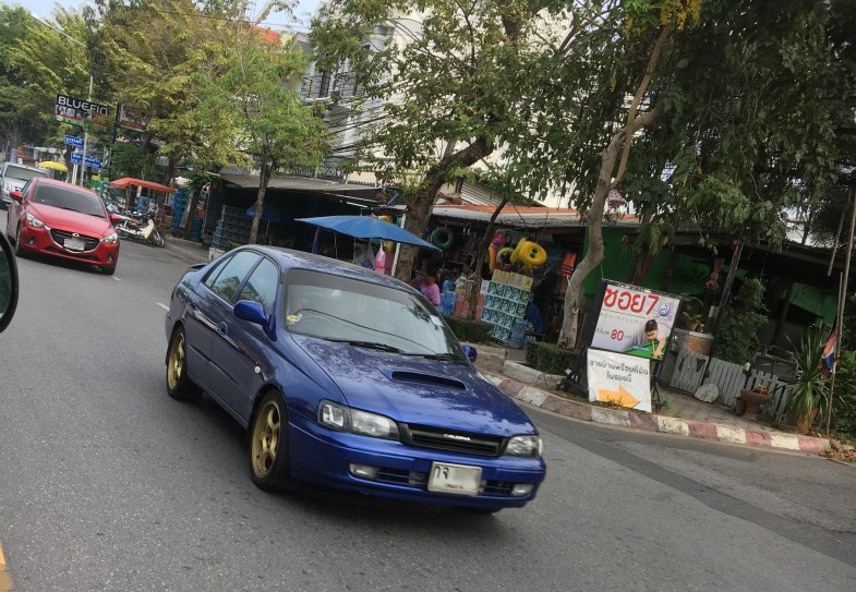 おっ! GC8だ! と思いきや、コロナの輸出仕様カリーナEでしょうか。こんな素敵な旧車もたくさん走っています。一方、その後ろに走っているのはマツダ・アクセラ(タイ名:Mazda3)。