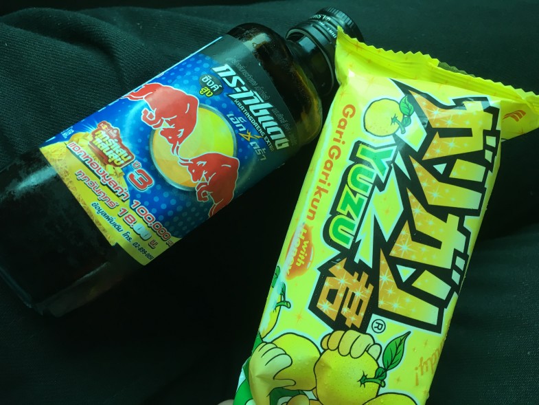 現地のセブン-イレブンではガリガリ君も売っています。屋外取材で火照った体に染み入るYUZU味、美味しゅうございました。レッドブルのタイ本家バージョンも、疲れた体に効きまくりです。