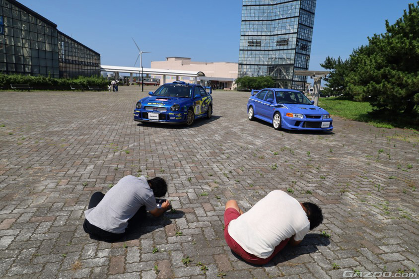 今回はラリー会場を彷彿とさせるランエボ&インプレッサの2ショットや、スポーツカーがズラリと並んでプチミーティング状態になる場面などもあったりして、買い物や観光に訪れたひとたちからも熱い視線を感じながらの取材会となりました。