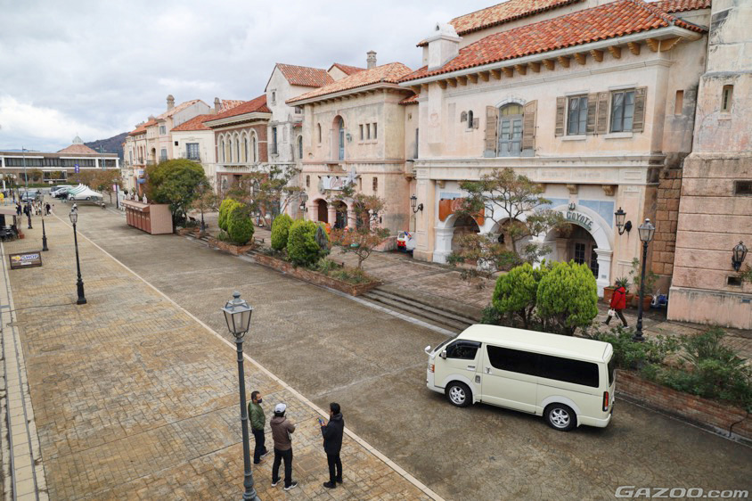 オープン時間前であれば園内での撮影もOKということで、通常よりも取材開始時間を前倒しして朝8:00から撮影をスタート。フランス、イタリア、スペインなどの街並みをイメージした園内に、特別にクルマを乗り入れて撮影をおこないました。