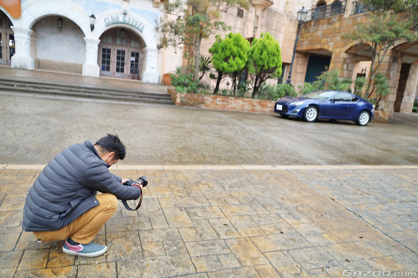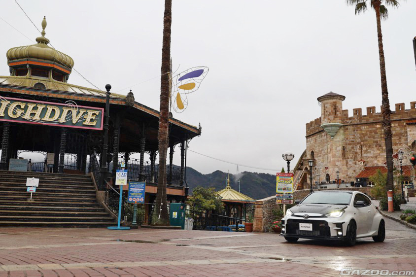 オープン時間前であれば園内での撮影もOKということで、通常よりも取材開始時間を前倒しして朝8:00から撮影をスタート。フランス、イタリア、スペインなどの街並みをイメージした園内に、特別にクルマを乗り入れて撮影をおこないました。