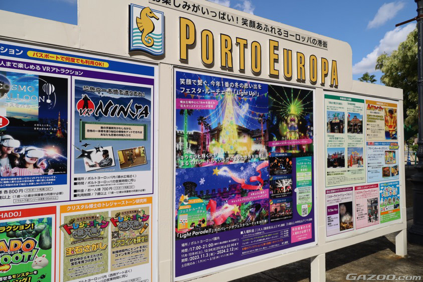 大人から子供まで楽しめるアトラクションがもりだくさんのポルトヨーロッパ。入場無料で地中海の雰囲気を楽しむことができるほか、夏には花火大会、冬にはイルミネーションなど、さまざまな限定イベントも開催されるそうです。
