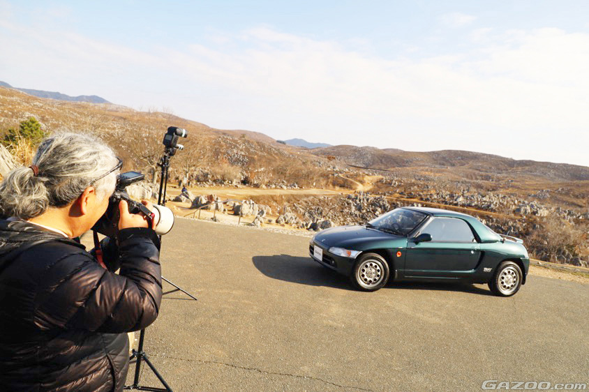 今回、秋吉台での開催にあたっては、観光協会や地元のクルマ好きなみなさんたちのネットワークなどにも協力いただき、とても素敵な環境で撮影することができました。