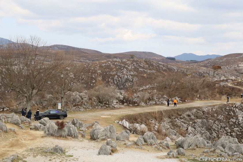 そんな中、普段は入ることのできない展望台付近のカルストを背景に、そろりそろりとクルマを移動させるのは、参加者のみなさんもちょっと緊張したのでは!?