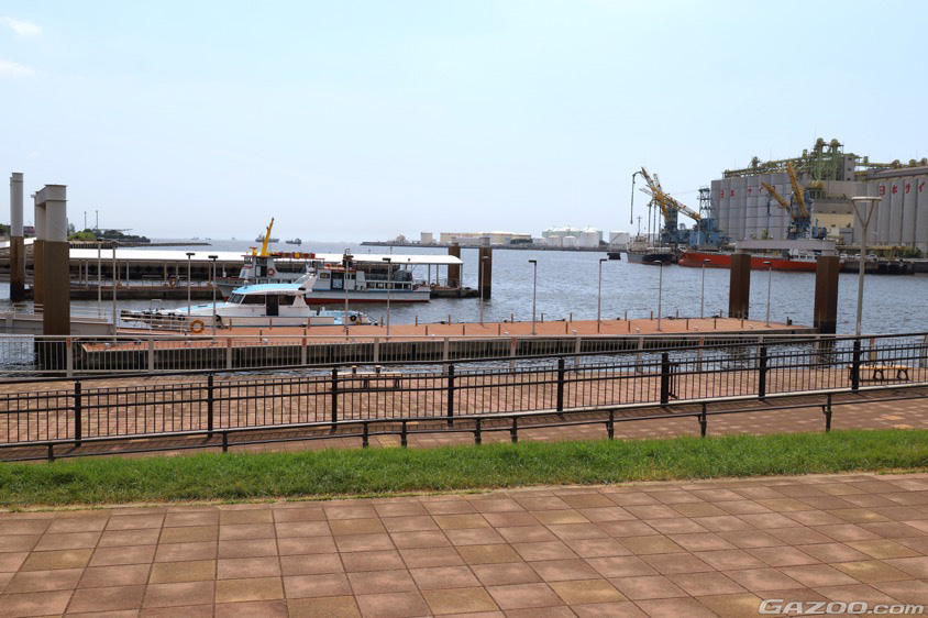 千葉県内の6市にまたがる千葉港を周遊する遊覧船の桟橋をはじめ、緑地・芝生・タイル敷きのエリアがあり、海を臨むプロムナードとして散歩などを楽しむ市民に親しまれている『千葉みなと さんばしひろば』。