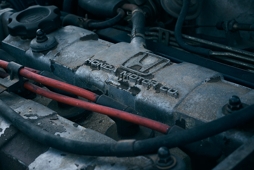 「ショップ任せだと限界がありますよね。エンジンやエンジンオイルはしっかり診てくれても、例えばワイパーのリンクに潤滑油を挿してくれるところはまずありません。でも、このCR-Xのワイパーの構造上、定期的にオイルを挿してあげないとスムーズに動かなくなってしまうんです。それならば…と、自らCR-Xのメンテナンスを行うようになり、ノウハウを積み重ねてきました。最近ではヘッドカバーの結晶塗装をマスターしましたよ。とはいえ、何がなんでも自分でやらなければ気が済まないというわけではなく、ボーリングやヘッドの面研といった工作機械が必要な加工はその道のプロに頼みます」