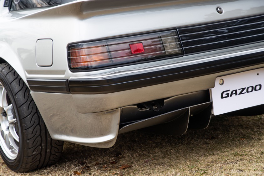 「リヤバンパーの下側が、ノーマル状態のままだと急になにもなくなってしまうデザインで、違和感があったんです。そこを、サイドステップから自然なラインで後ろにつながるようにパーツを追加してもらいました」。もちろん市販のエアロパーツは存在せず、造形もこだわった部分のため、唯一オートサロンの出展時は間に合わなかった、というのが当時の裏話だ。