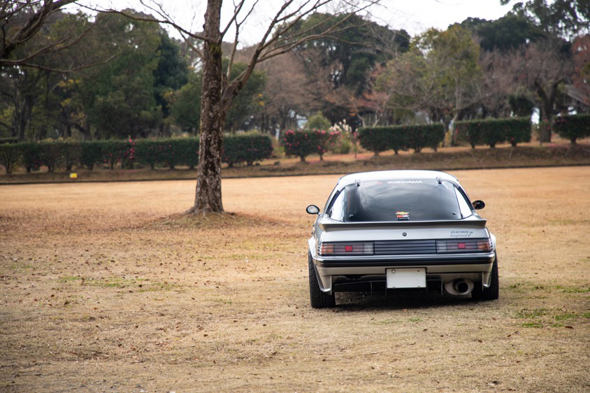 軽快なNAロータリーサウンドを響かせ、吉野公園にやってきたこのクルマは1984年式とは思えないほど美しいマツダ・サバンナRX-7(SA22C)。それもそのはず、このサバンナは、チューニングカー業界で『ロータリーの神様』と呼ばれる雨宮勇美氏が代表を務めるチューニングショップ『RE雨宮』にてフルレストア&カスタムを施され、東京オートサロン2016のブース展示車両としてスポットライトを浴びた1台なのだ。