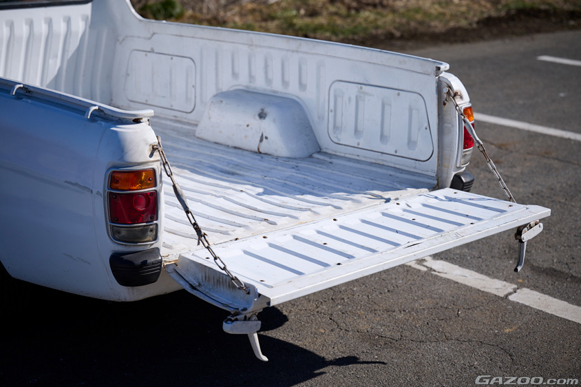 「リアからの眺めですね。斜め後ろから見たときのボディサイドの1本のプレスラインがサニトラの造形美を引き立たせてくれているように感じます」