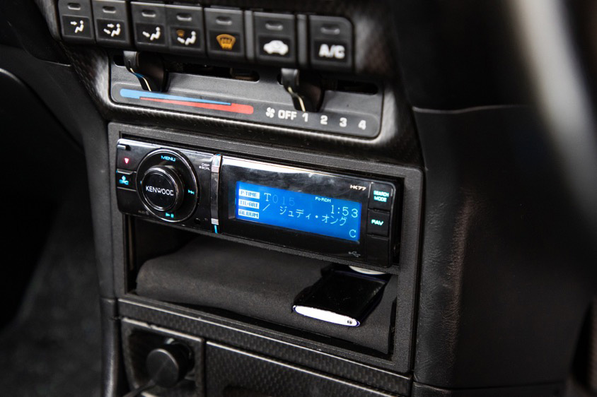 「純正オーディオレスだったので2年間ぐらいはコンソール部分に穴がガッポリと空いた状態で乗っていました。結局はジムカーナを始める際に現地まで自走するので、交通情報や天気予報を知っておきたいと思って後付けしたんですけどね。最初はカセットテープ、次にMD、現在はiPodと、どんどん新しく便利になっていく機能に、やっぱり時の流れを感じちゃいます」