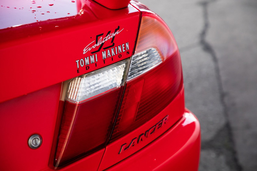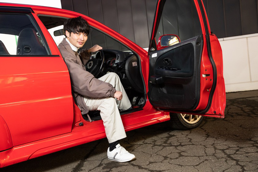真紅の三菱・ランサーエボリューション(CP9A型)で取材会にお越しいただいた神田和さん(28才)。彼の乗るランエボは世界ラリー選手権(WRC)で数々のタイトルを獲得した名ドライバーの名前を冠して2000年に発売された特別仕様車『ランサーエボリューションVI トミー・マキネンエディション』。フロントバンパーやボディカラーなどのエクステリアはもちろん、タービンやマフラー、サスペンションにバケットシートなど、さまざまな専用アイテムが装着されていて『ランエボ6.5』などとも表現されるモデルだ。
