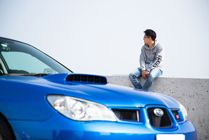 「中学生までは野球をしとったので、そこまでクルマに興味があったわけでもなかったんです。工業高校を出て自動車関連先に就職したんですけど、せっかくだからマニュアルに乗ろうかな〜というくらいで、最初はヴィッツRSに乗っていました。でも途中からマニュアル運転の楽しさに気づいてスポーツカーに乗りたくなりまして。5人乗りのターボ車ってことでインプレッサかランエボか悩んだんですけど、家族みんなで中古車屋さんへ行って見つけた“鷹目のインプレッサ”がめちゃくちゃカッコよくて一目惚れ。細かいスペックやグレードはあまり気にせずこれに決めました」