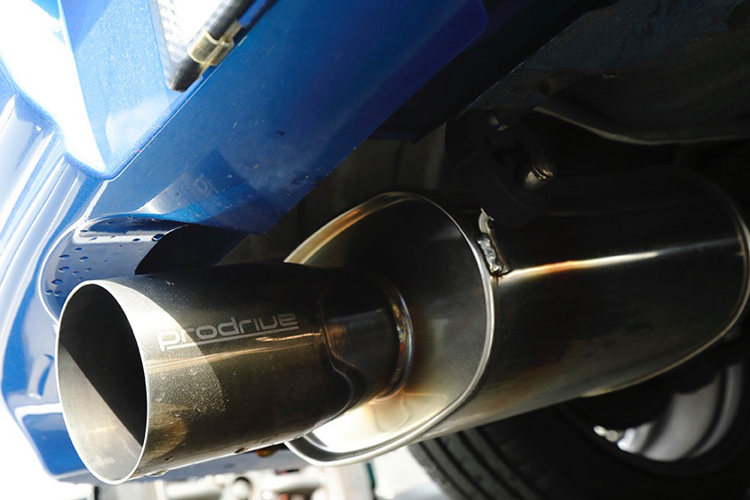 EJ20エンジンのボクサーサウンドをより楽しむために導入したという、不等長レイアウトの東名パワード製エキマニとプロドライブ製マフラーの取り付け作業は、父親といっしょに取り組んだそうだ。