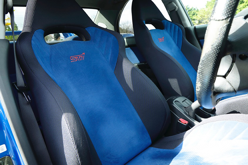 インテリアは購入時から装着済みだったというSTI製で統一済み。ダッシュボードの3連メーターも最初から備わっていたのが特に嬉しかったと青木さん。