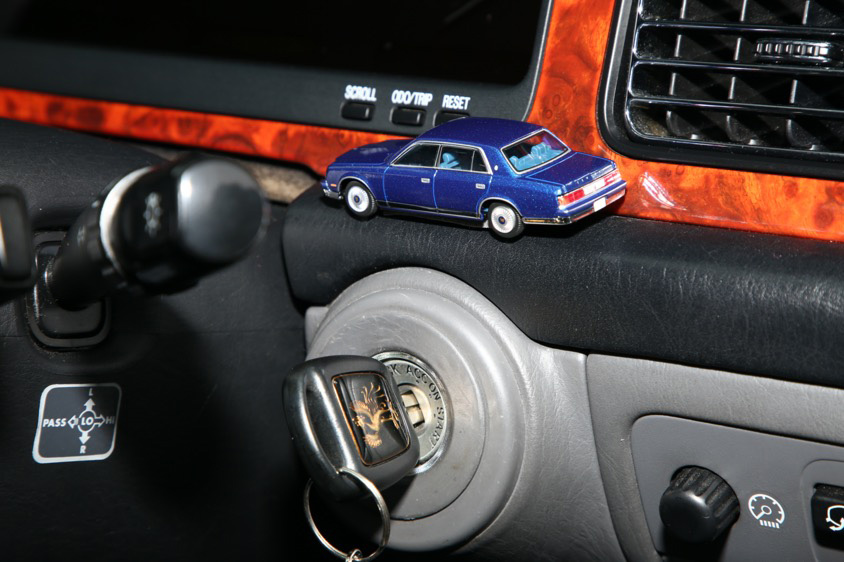 偶然見つけて手に入れたという『トミカリミテッドヴィンテージNEO』のセンチュリーは、もともとはフェンダーミラーのモデルだったが、愛車に合わせてミラーを取り外したという。希少なスケールモデルであっても愛車を再現するためなら加工を躊躇わないのは、クルマ好きの性(さが)!?