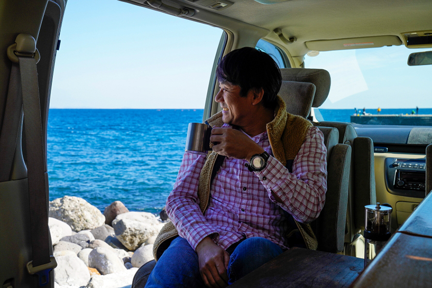 「どんなに安くても、どんなに古くても、キャンピングカーが一台あれば車内でリラックスして寝ることができます。きっと新しい旅のスタイルを楽しめるようになるはずです。もし現在スペースに余裕のあるクルマに乗っているなら、試しに数泊クルマの中で寝てみることをおすすめします。きっと思いのほか快適で、自由に旅を楽しめることに気付くはずですから。『だったらキャンピングカーならもっと快適だね』。そう思ってもらえたら嬉しいですね」