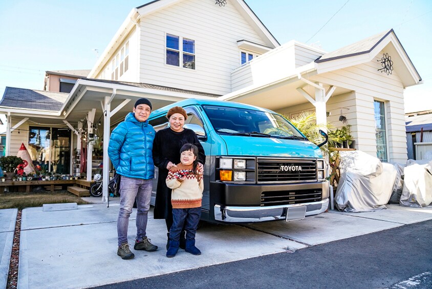 海の近くにアーリーアメリカンなイメージの家を建て、「この家に似合うのはどんなクルマか」を考えていた時に偶然であったビンテージスタイルにカスタムされたハイエース。「これしかない!」と即購入したという。