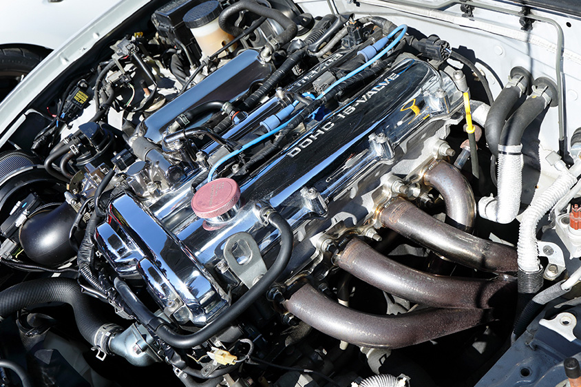 3年前、走行距離が18万キロになったタイミングでエンジンをまるっと交換。神戸の老舗ロードスターショップ「タックイン99」の手によって、ピストンのオーバーサイズ化やクランクシャフトのバランス取りが行われたチューンドエンジンを搭載している。