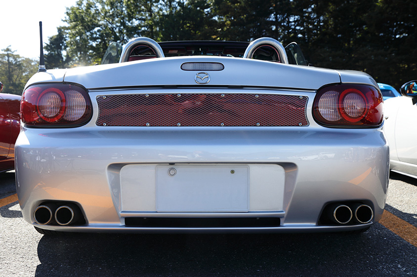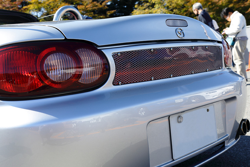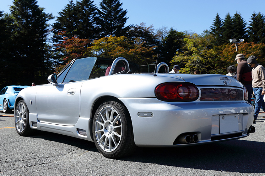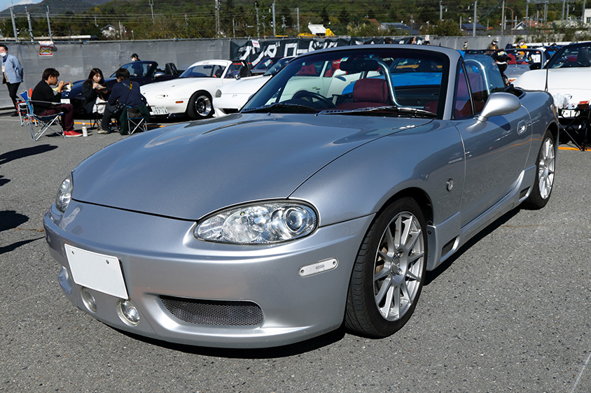 オーナーが「このバンパーをつけているのは、全国にもう1台しか見たことがない」と話すこちらのNBロードスターは、静岡県のK.G.Worksというプロショップがオリジナルエアロキットを装着し、デモカーとして2004年に制作した1台だという。