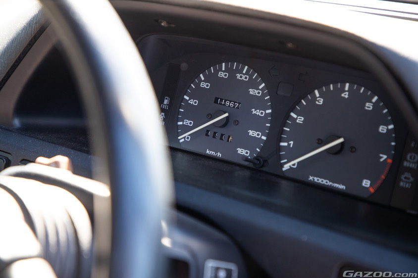 運転席と助手席にホールド性の高いスポーツシートを採用したブラック基調の室内も、30年の年月を感じさせない良好なコンディション。