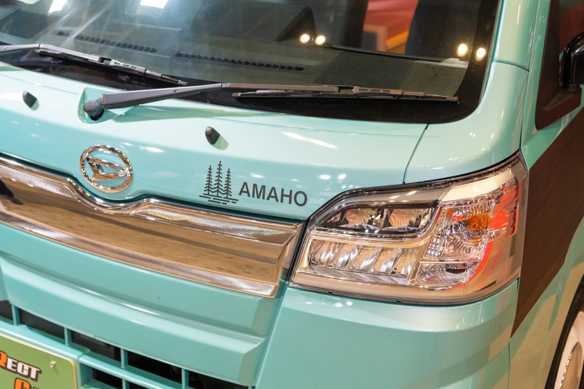 ダイレクトカーズが取り扱う5車種の中から、東京オートサロン会場に持ち込まれていたのが、カムロードベースのキャンピングカーと、ハイゼットトラックをベースに「よりクルマ旅や車中泊を楽しめるキャブコン」をコンセプトに開発された可愛らしい軽キャンピングカー『AMAHO(アマホ)』。