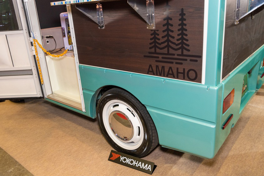 「アマホのベースはダイハツの軽トラ・ハイゼットにシェルを追加したオリジナル車両で、何年か前からコンプリートモデルとして販売しています。基本的には女性向けで、このクルマで生活ができて、さらに外遊びを楽しみたいなと思ってもらえる仕様のクルマにしています」